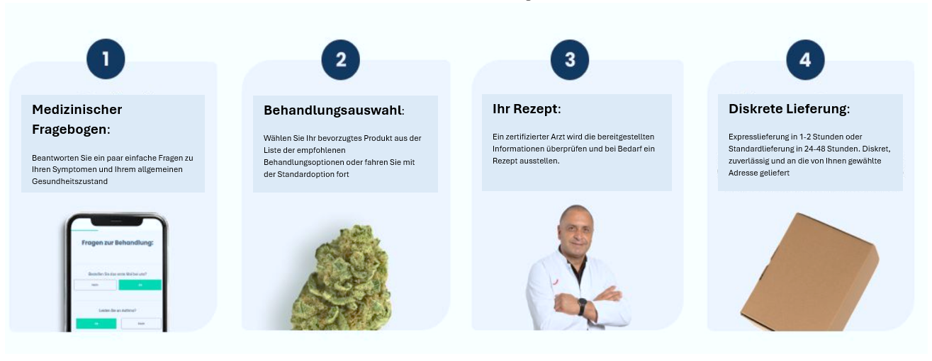 Alles aus einer Hand: Von der Online-Verschreibung bis zur schnellen Lieferung von medizinischem Cannabis – einfach, digital und sicher.